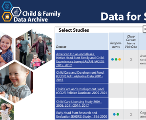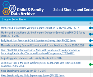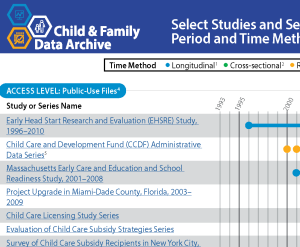 Explore some of the studies and series available at CFData by the data collection period, child age in the study, data access method, and more!