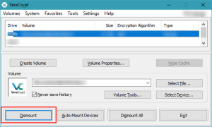 If you no longer need to use the drive, select it from the list and click on the ?Dismount? button. This will finish any last minute encryption and unmount the drive.