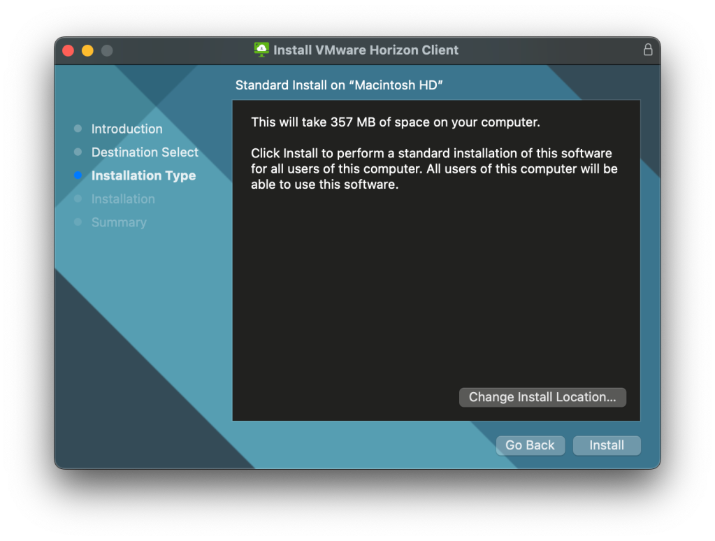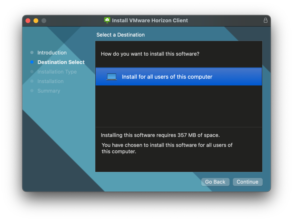 2. Double-click the installer (*.dmg file) from your Downloads folder to begin the installation process. Double-click the VMware Horizon Client.pkg.