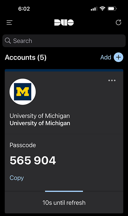 6. If you cannot receive a push notification, open the Duo Mobile app and press the green key icon. A 6-digit passcode will appear. Enter that passcode on the VDE Duo-factor login screen. Note that the passcode changes every 60 seconds. You must enter the current passcode to be approved.