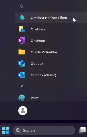 4. Once the reboot is complete, open the Start menu, and click the Omnissa Horizon Client to begin using the application.