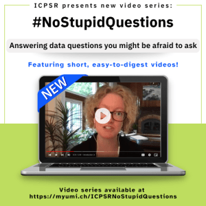 ICPSR presents #NoStupidQuestions, our series that helps answer data questions you might be afraid to ask. What is the difference between data and statistics? What exactly is metadata? We’ll answer these questions and more in short, easy-to-digest videos featuring ICPSR’s unique blend of fun and learning.