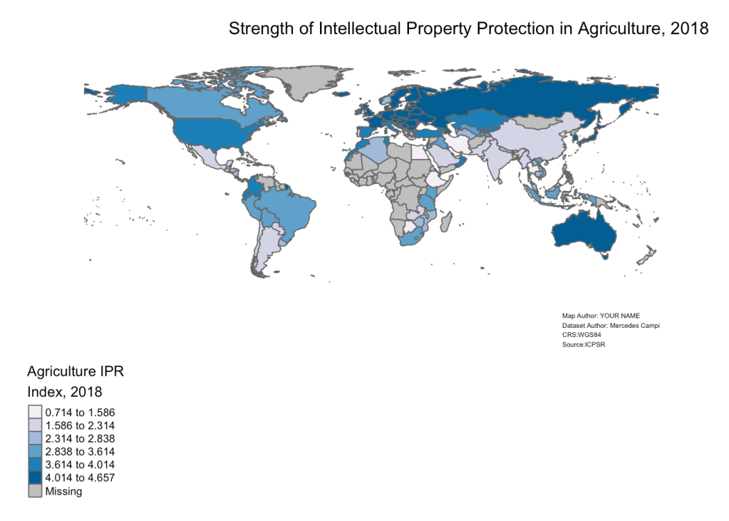 Refer to the following dataset, entitled “Worldwide Index of IPRs [Intellectual Property Rights] in Agriculture, 1961-2018”, which is archived on ICPSR and authored by Mercedes Campi amd Alessandro Nuvolari.